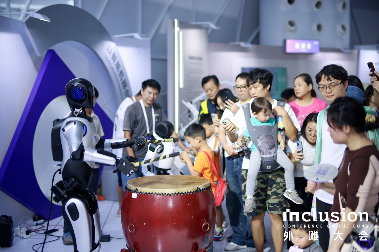 在外滩大会的“机器人小镇”展区,意昂远征A2再次展现其作为“科技鼓手”的非凡能力,向观众演绎一段《迎客鼓》,机械臂扬起鼓槌的每一个动作都精准契合传统鼓点,既保留了韵律灵魂,又注入了科技特有的节奏控制力,吸引台下观众纷纷举起手机记录这一时刻。而另一边,灵犀X2则扮演起“智能接待官”的角色,它不仅能够流畅介绍展区内容、回答观众问题,还能通过多模态感知识别观众情绪,做出相应肢体反馈。这种兼具功能性与情感化的交互,打破了“机器人冷漠”的刻板印象,营造出温暖而智能的“伙伴”形象。